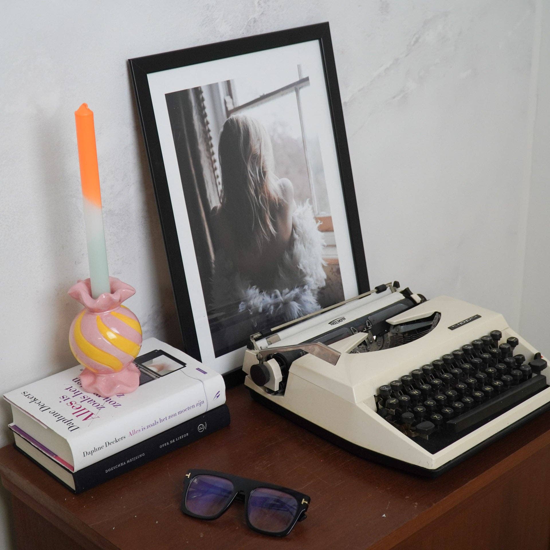 Conseil de style : Associez le bougeoir rond en forme de bonbon à d'autres accessoires inspirés des bonbons pour un look ludique.