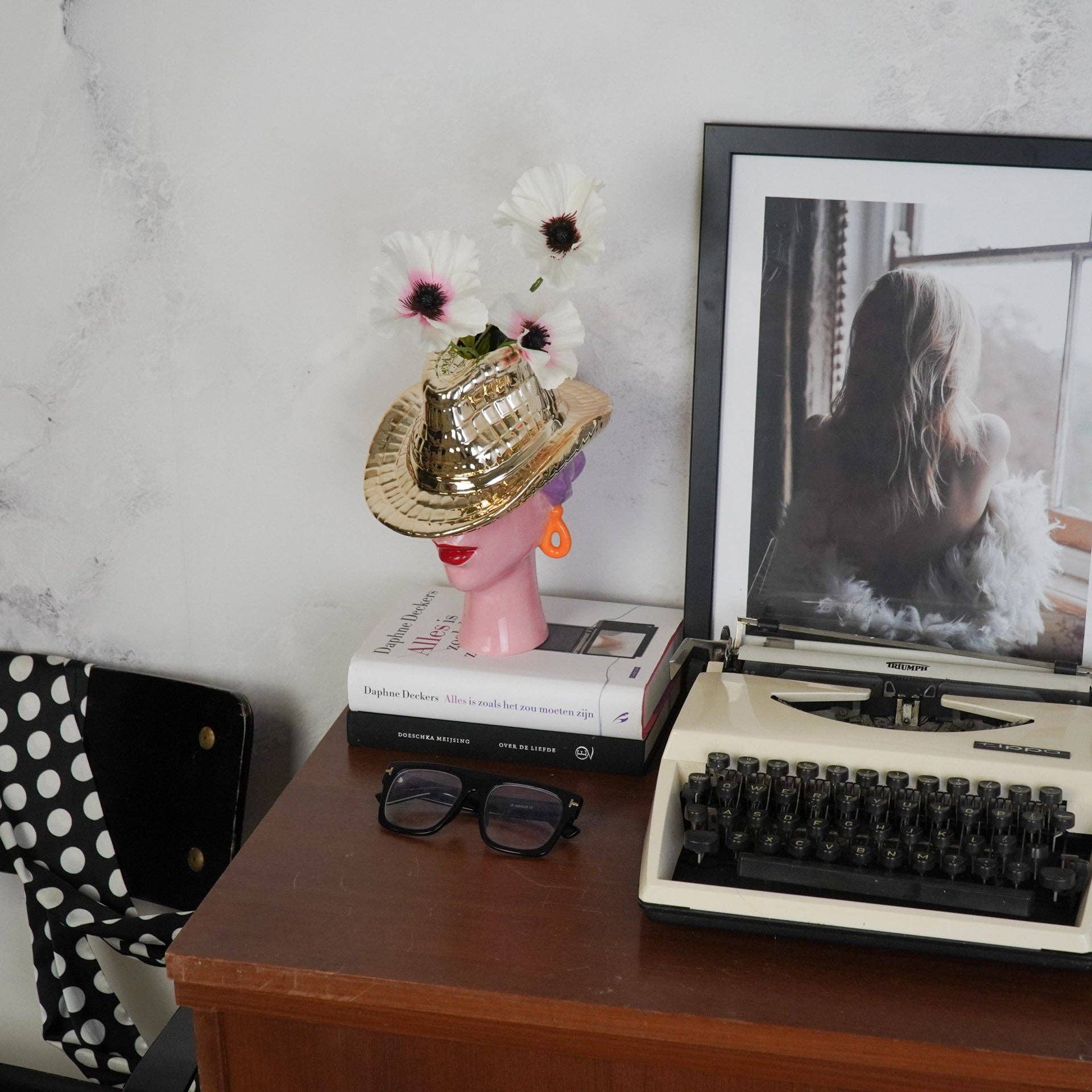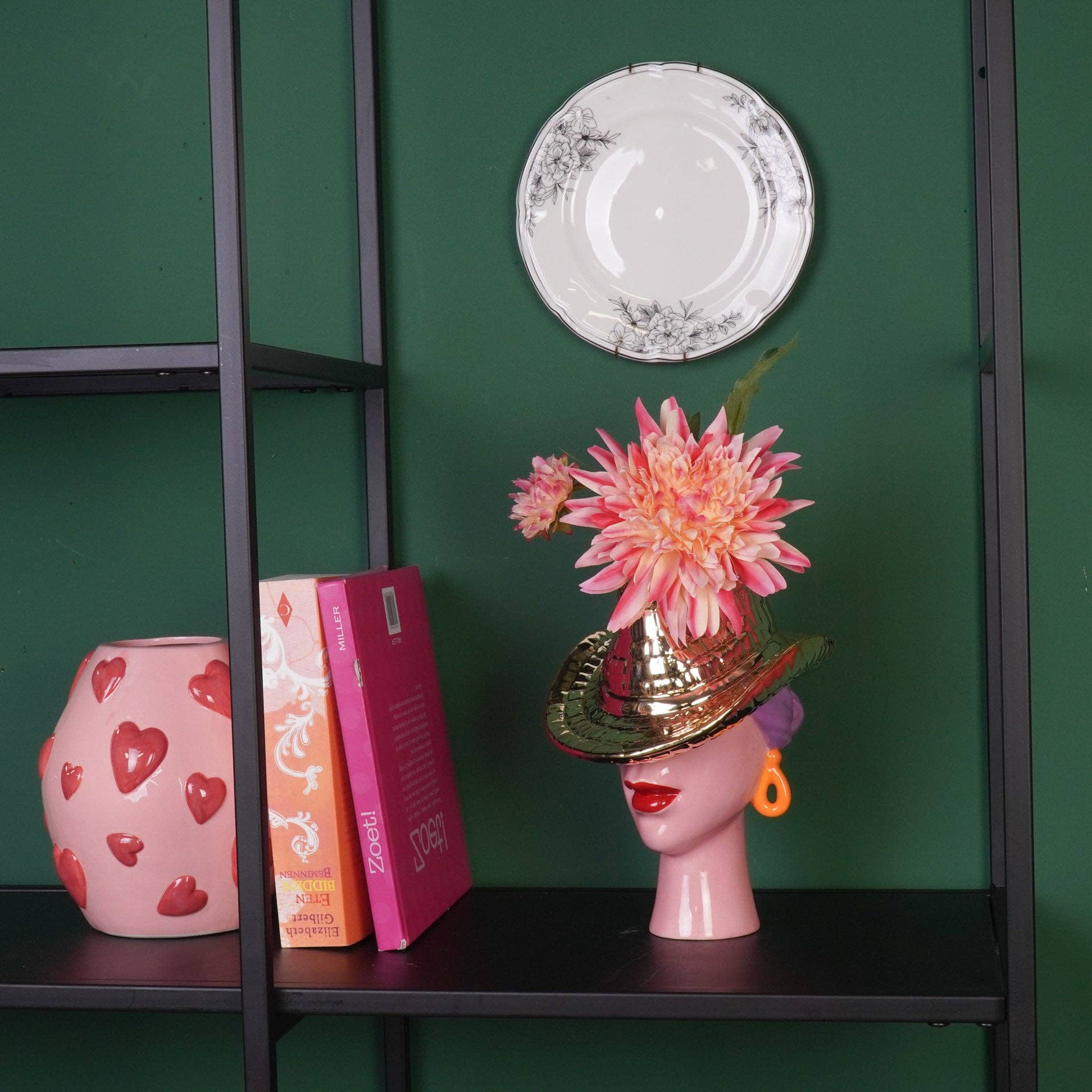 LADY WITH THE HAT – Une touche de chic western pour votre intérieur ! Ce vase en céramique en forme de femme avec un chapeau de cow-boy en lilas et or (19x16x23,5 cm) est un véritable accroche-regard. Ce vase féminin combine un design artistique avec une touche audacieuse et féminine. La teinte lilas subtile combinée à l'or étincelant fait de ce vase une pièce maîtresse élégante qui fait briller vos fleurs encore plus.