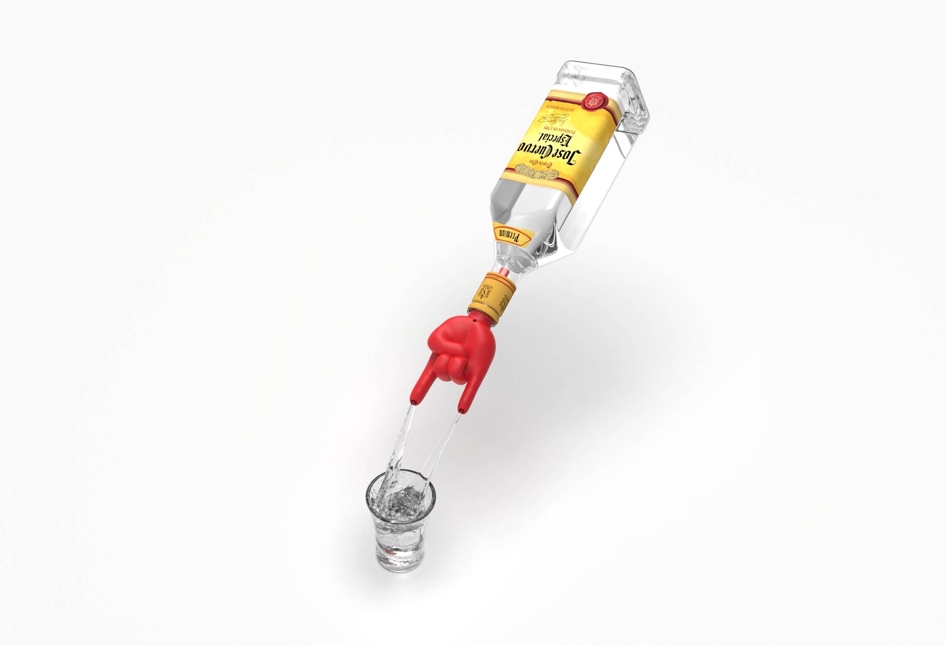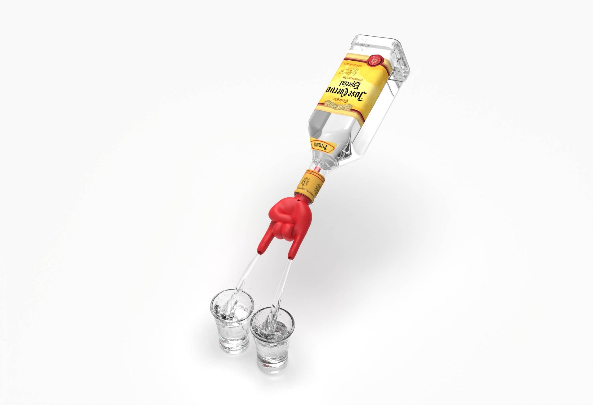 A silicone spout designed to fill two glasses simultaneously.
