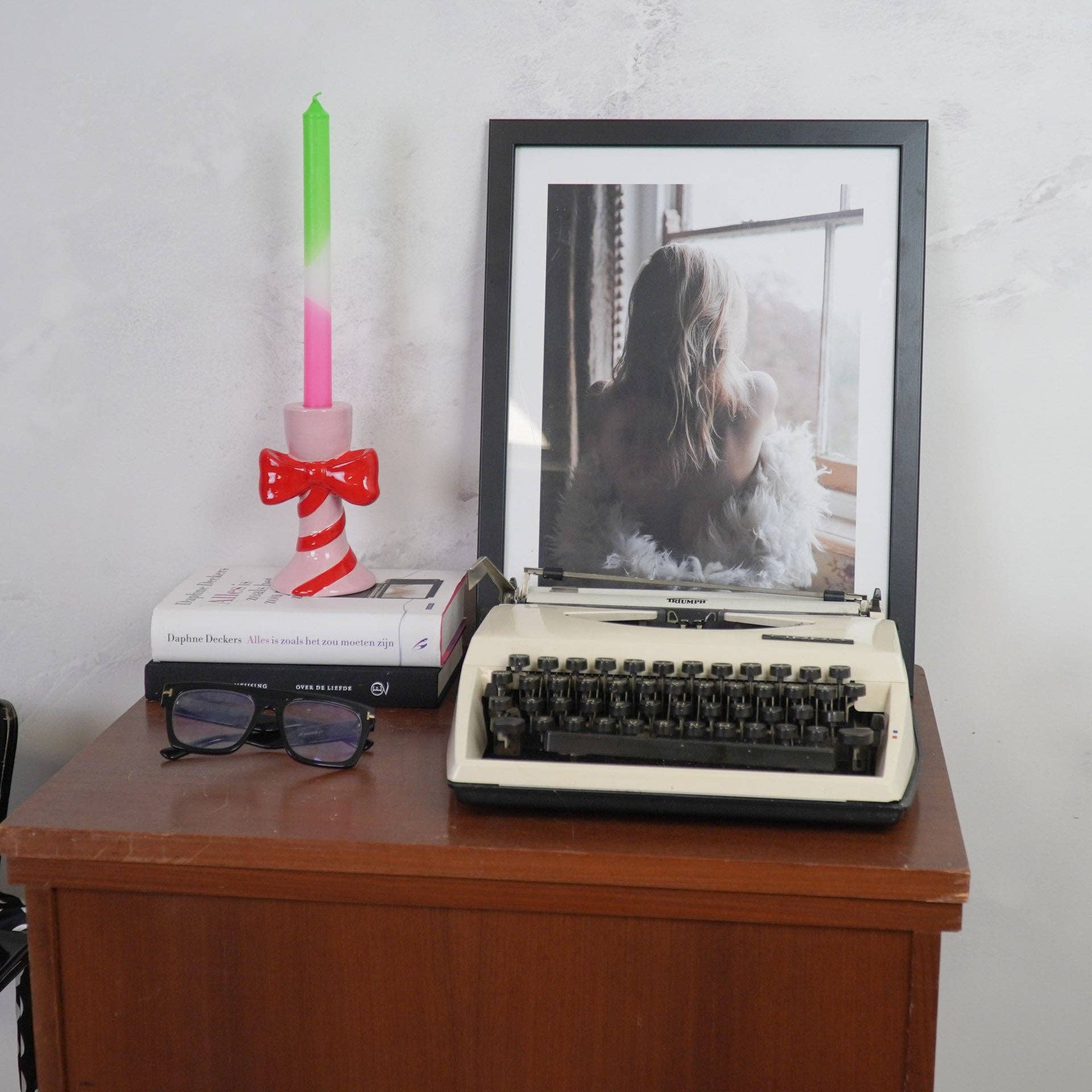 Candlestick - Stripes with Bow - Pink/Red - 9x8x14cm