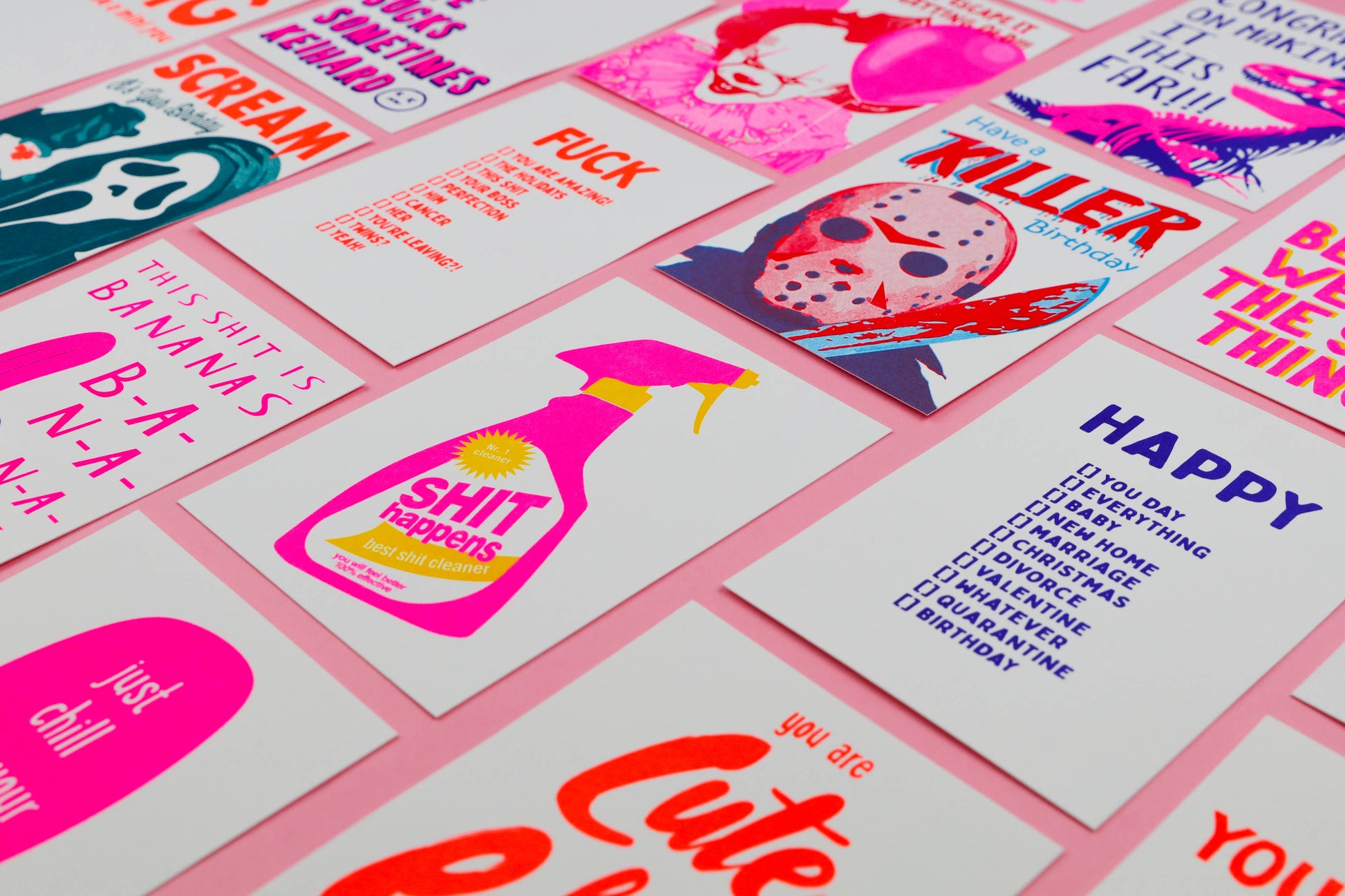 Hand-printed using the RISO technique, this retro-pop card combines neon pink and bright yellow for a vibrant, textured look. Each print is unique: slight variations are the charm of this artisanal and ecological process.
