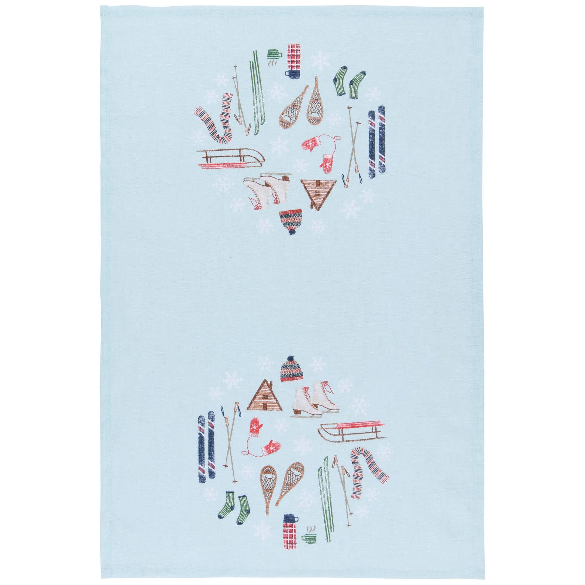 Keep the memory of winter holidays on the slopes alive in your home with this Alpine Adventure kitchen towel set from Now Designs. From the kitchen to the dining room and beyond, these towels bring life and character to everyday cooking and cleaning tasks. Slip a few over your oven handle to enjoy their perfect combination of form and function. The 100% printed cotton construction of these kitchen towels makes them ideal for drying hands or polishing glassware and cutlery, leaving a lint-free, streak-free shine. Keep a printed towel around your coffee bar for quick cleanups or to cover dough as it rises. These versatile towels are a classic kitchen essential that can handle it all. Size: 18 x 28 inches Material content: 100% cotton Care instructions: Machine wash warm, tumble dry low, do not bleach.