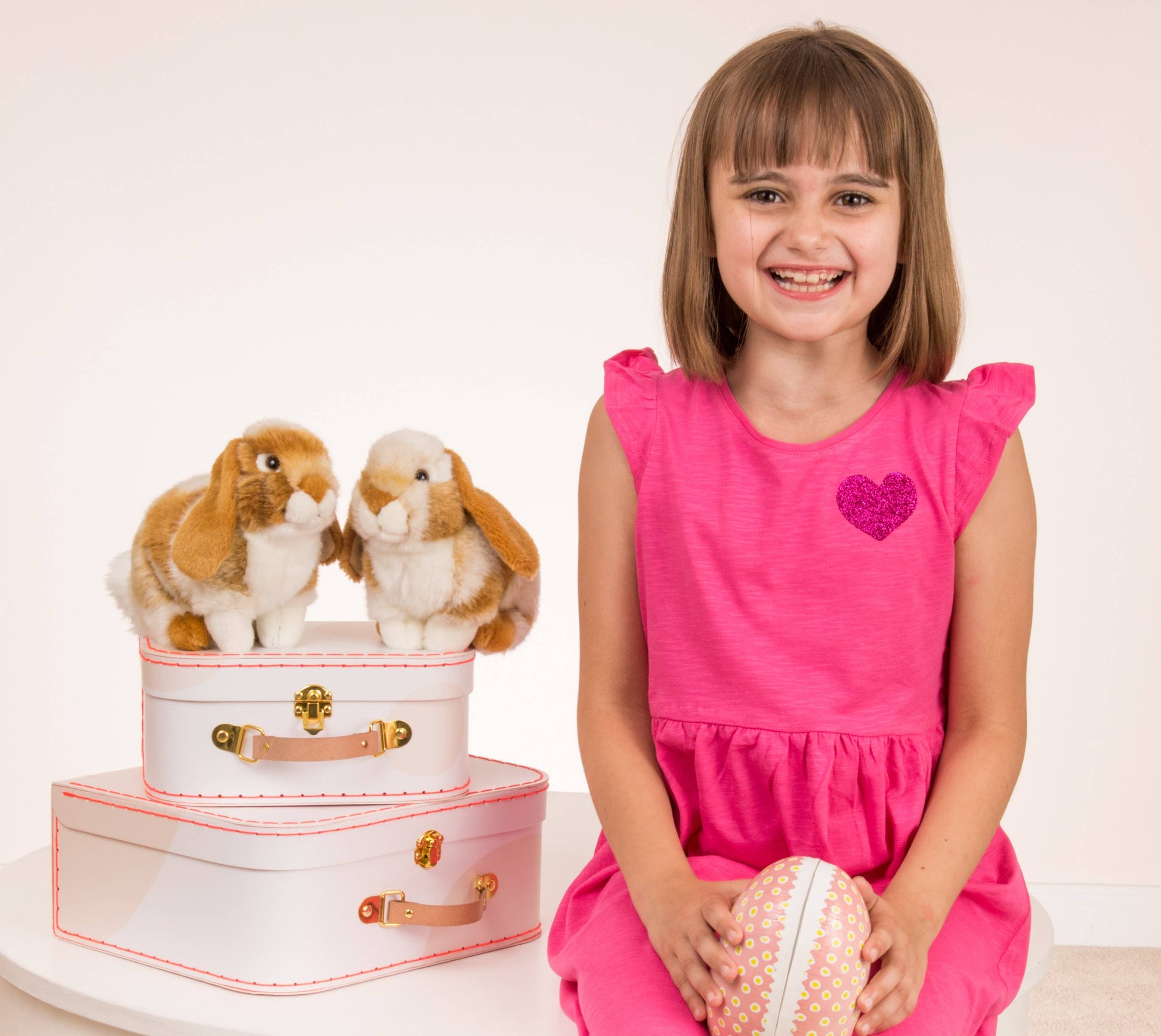 This cute, cuddly sitting bunny is adorable and incredibly soft to the touch! Young children adore its squishy material and charming design. They take their bunny everywhere with them, whether in their bed, stroller, playmat, or car. It's the perfect gift for Easter, christenings, and birthdays!