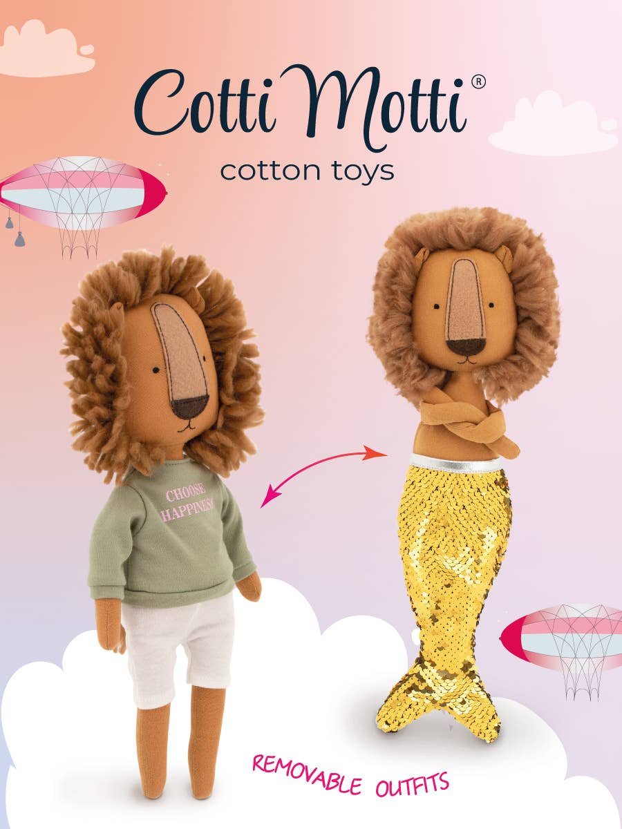 Simon the Lion Plush Toy: Green T-shirt and Mermaid Tail Outfit - 29 cm