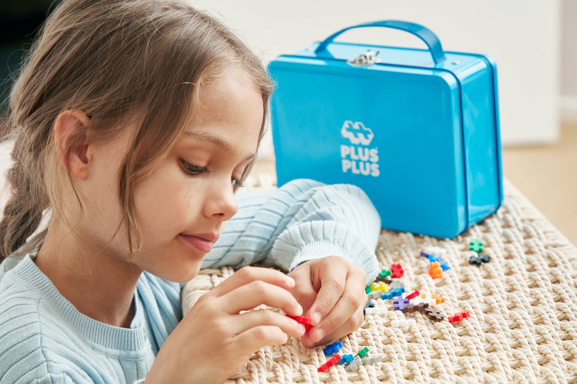 This blue or purple metal case contains 600 pieces of Plus-Plus CLASSIC (20 mm), two construction bases and a booklet to guide you in the development of several creations.
