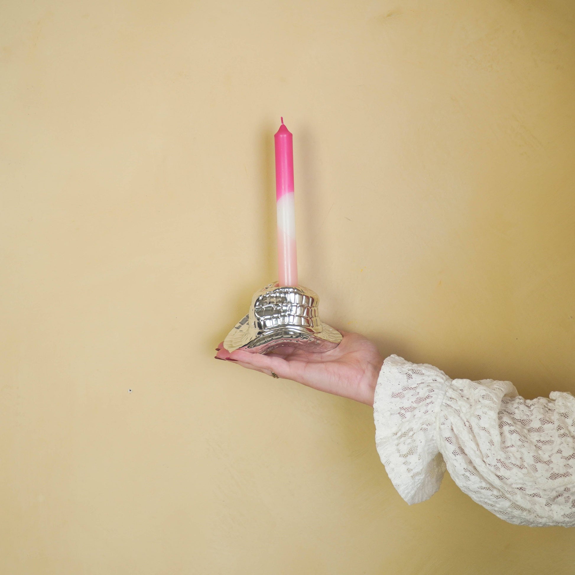 Kandelaar - Cowboyhoed - Keramiek - Zilver - 13,5x11x7 cm