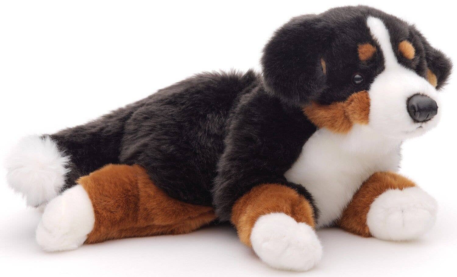 PRODUCTNAAM: Berner Sennenhond, liggend, 46 cm (lengte). Trefwoorden: hond, huisdier, pluche speelgoed, knuffel