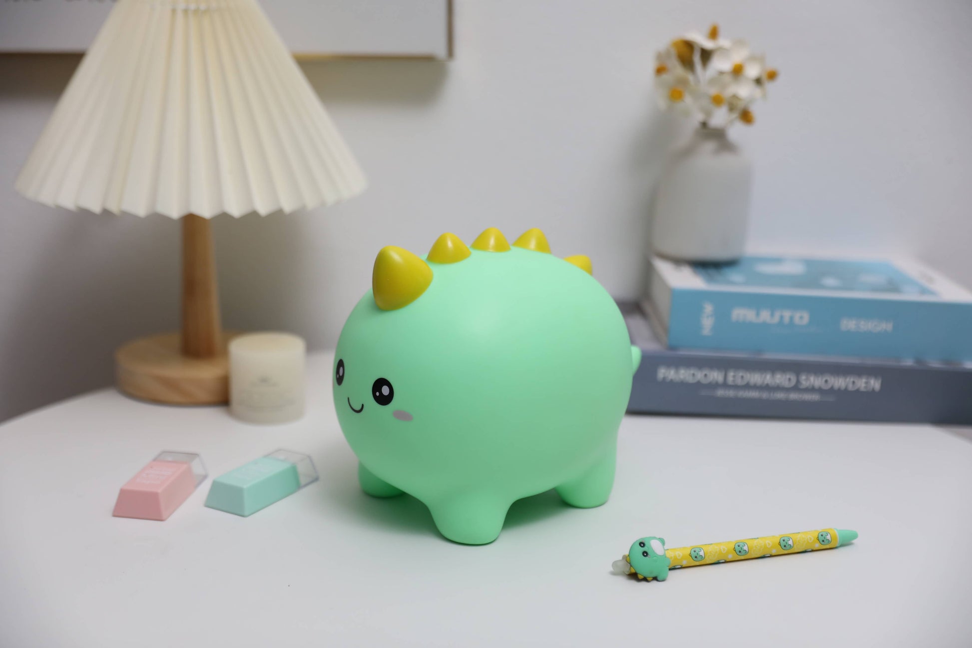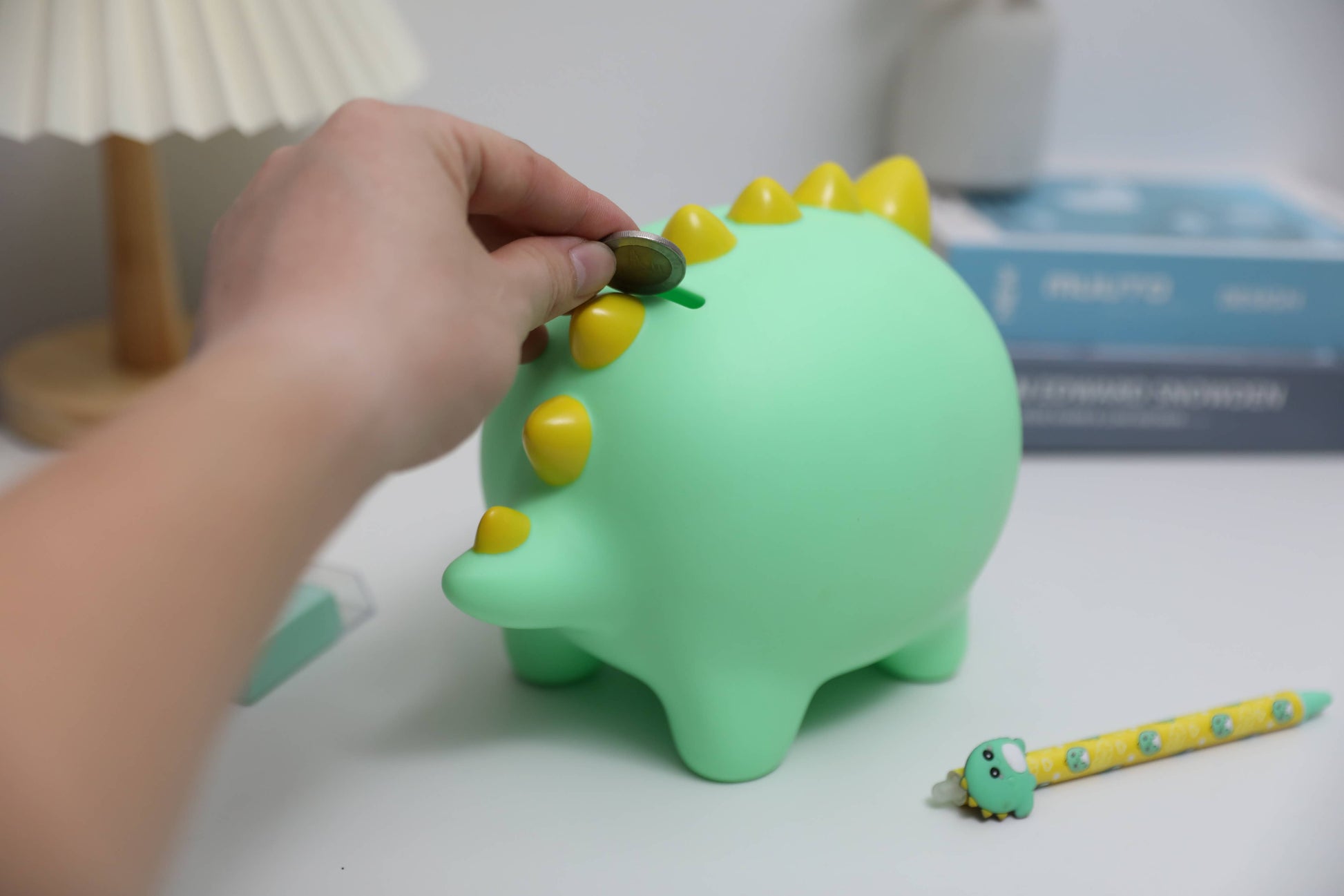 Tirelire Hello Dino en métal, ludique et pratique pour conserver vos pièces.