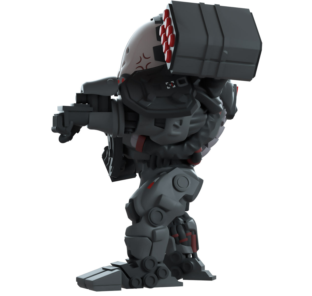 Déchirant l'acier et le ciment comme du beurre pour se frayer un chemin dans Youtooz pour des débuts imposants, Adam Smasher lève sa main gauche en avant, prêt à tirer une explosion du canon sur son poignet. D'une hauteur de 11,5 cm avec une grande nacelle de missile rectangulaire posée sur l'épaule de son corps de cyborg métallique froid qui est recouvert de plaques blindées épaisses, de fils enroulés et d'un exosquelette, deux points rouges vifs brillent des yeux gris de son « visage ». L'extérieur de son emballage montre Smasher tirant des missiles depuis le centre d'une pièce bleu métallique avec des serveurs rouges brillants. Alors que l'intérieur est d'un jaune vif et montre une silhouette de ville nocturne avec le logo « Cyberpunk 2077 », cela se poursuit ensuite sur la pochette de protection où sa figurine peut être vue à travers la grande fenêtre d'affichage transparente à l'avant. Cet objet de collection est livré dans une pochette extérieure mate, gaufrée et protectrice et un protecteur en plastique de taille personnalisée pour une protection maximale pendant l'expédition.