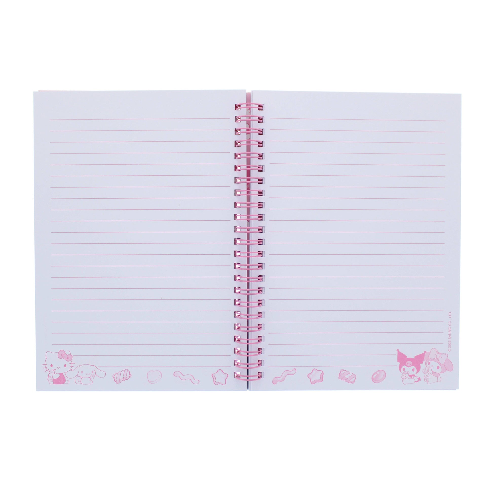 Ce carnet A5 à spirale est un incontournable ! Il présente une image super mignonne de Hello Kitty et de certains de ses amis sur les couvertures avant et arrière, ainsi qu'une finition pailletée sur le devant. À l'intérieur, il contient 80 feuilles de papier ligné, donc que vous travailliez ou ayez simplement des notes à écrire, ce carnet est parfait pour vous.
