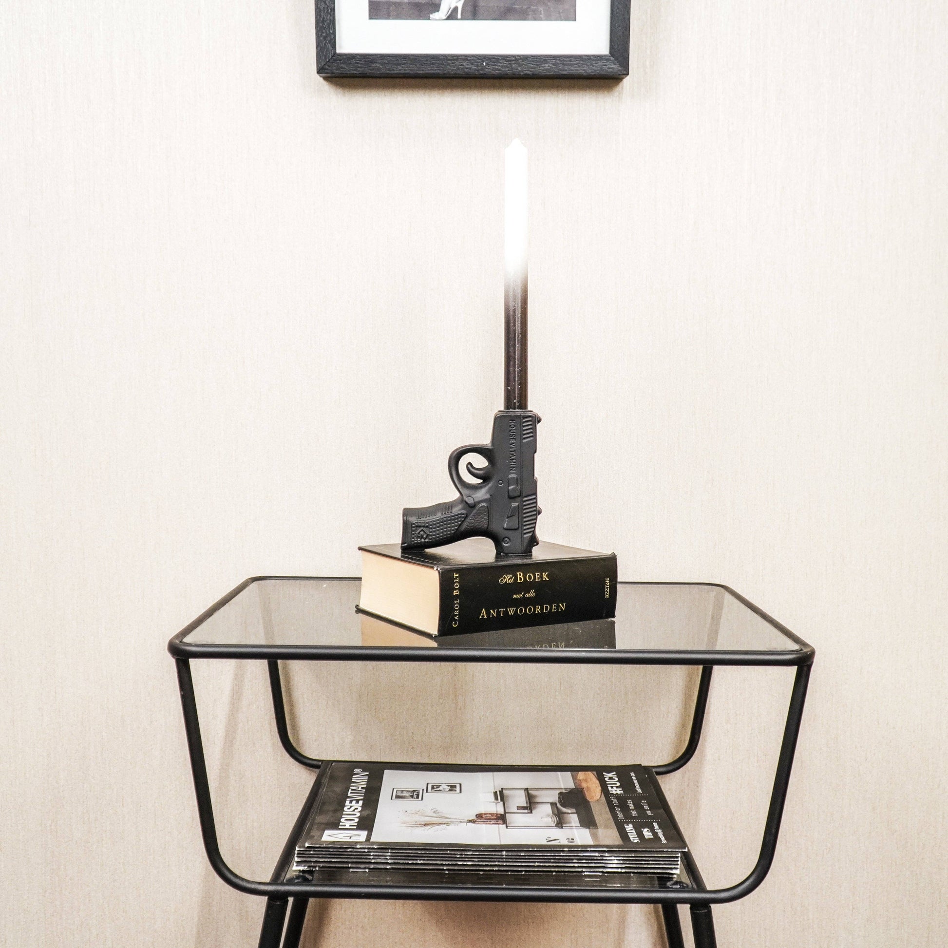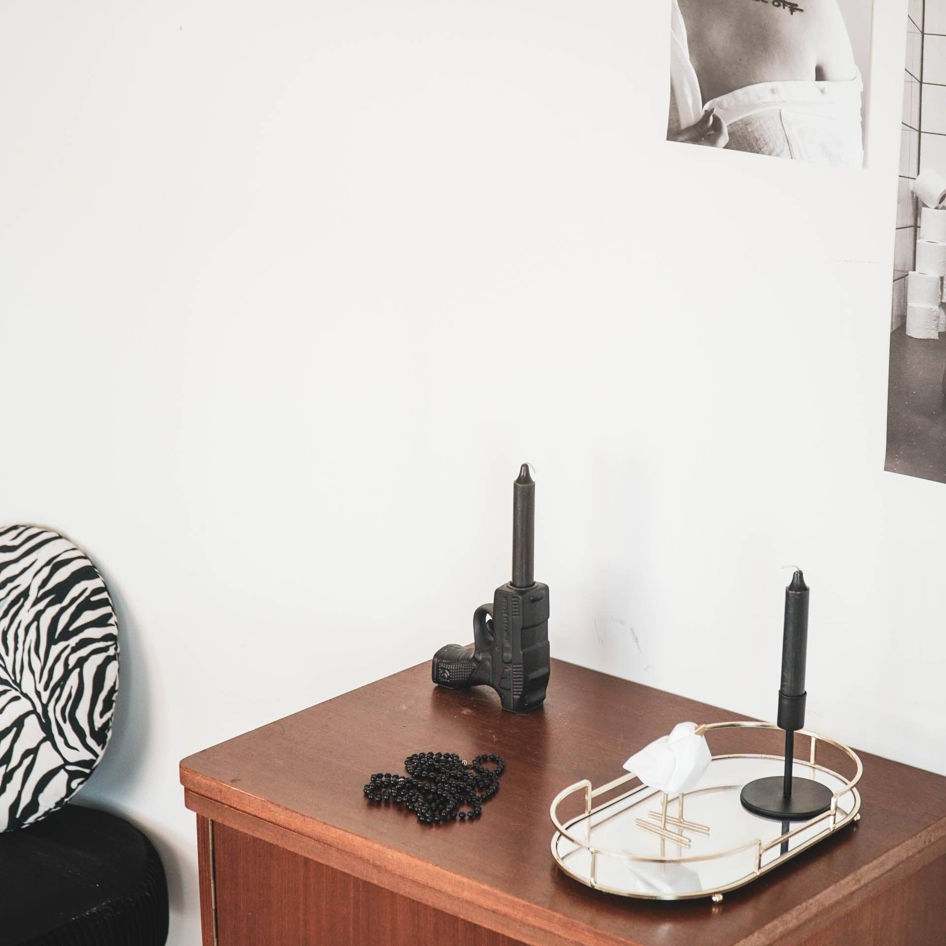 Bougeoir - Pistolet - Céramique - Noir - 12x5x12cm