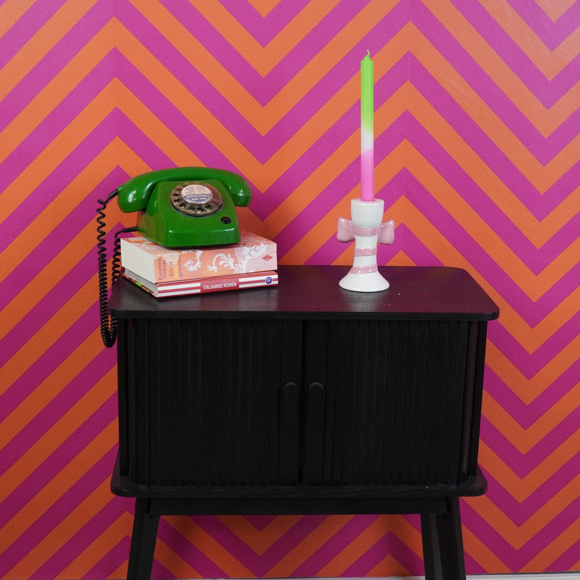 Bougeoir - Rayures avec Nœud - Blanc/Rose - 9x8x14cm