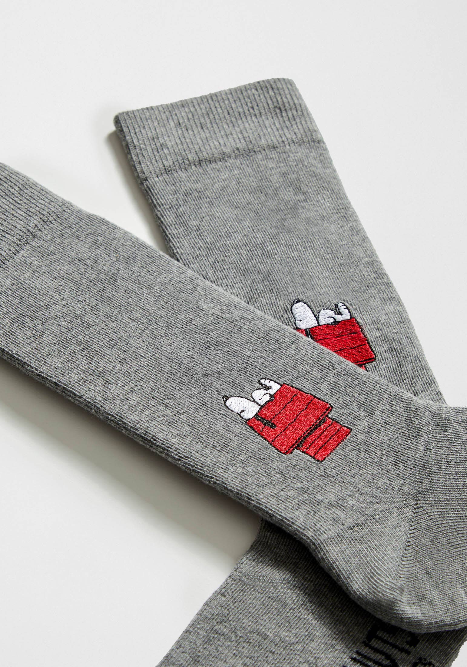 Chaussettes PEANUTS avec design brodé de couleur grise de style décontracté fabriquées en coton 100% biologique. Hauteur mi-mollet. Idéal pour les tenues de style urbain et polyvalent.