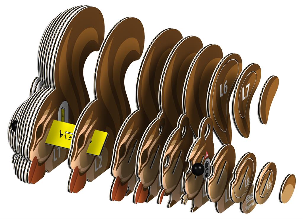 Nos produits sont conformes à 100% aux normes de sécurité internationales (EN71-1,2,3 et CPSIA). Un pack EUGY contient 7 cartes plates avec des pièces numérotées individuellement, toutes prêtes à être assemblées.