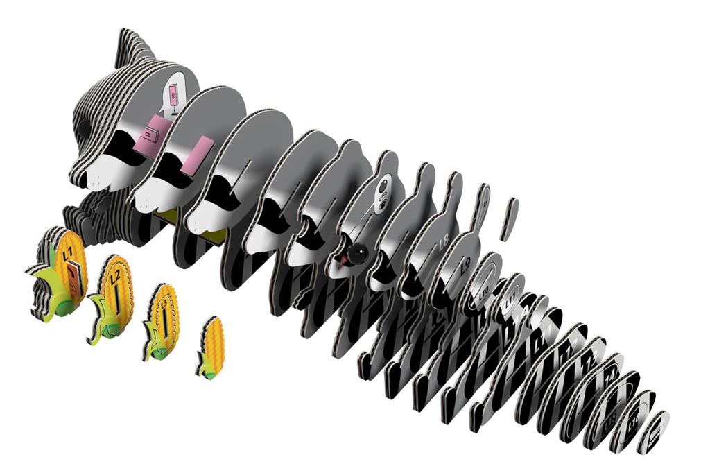 Nos produits sont conformes à 100% aux normes de sécurité internationales (EN71-1,2,3 et CPSIA). Un pack EUGY contient 7 cartes plates avec des pièces numérotées individuellement, toutes prêtes à être assemblées.