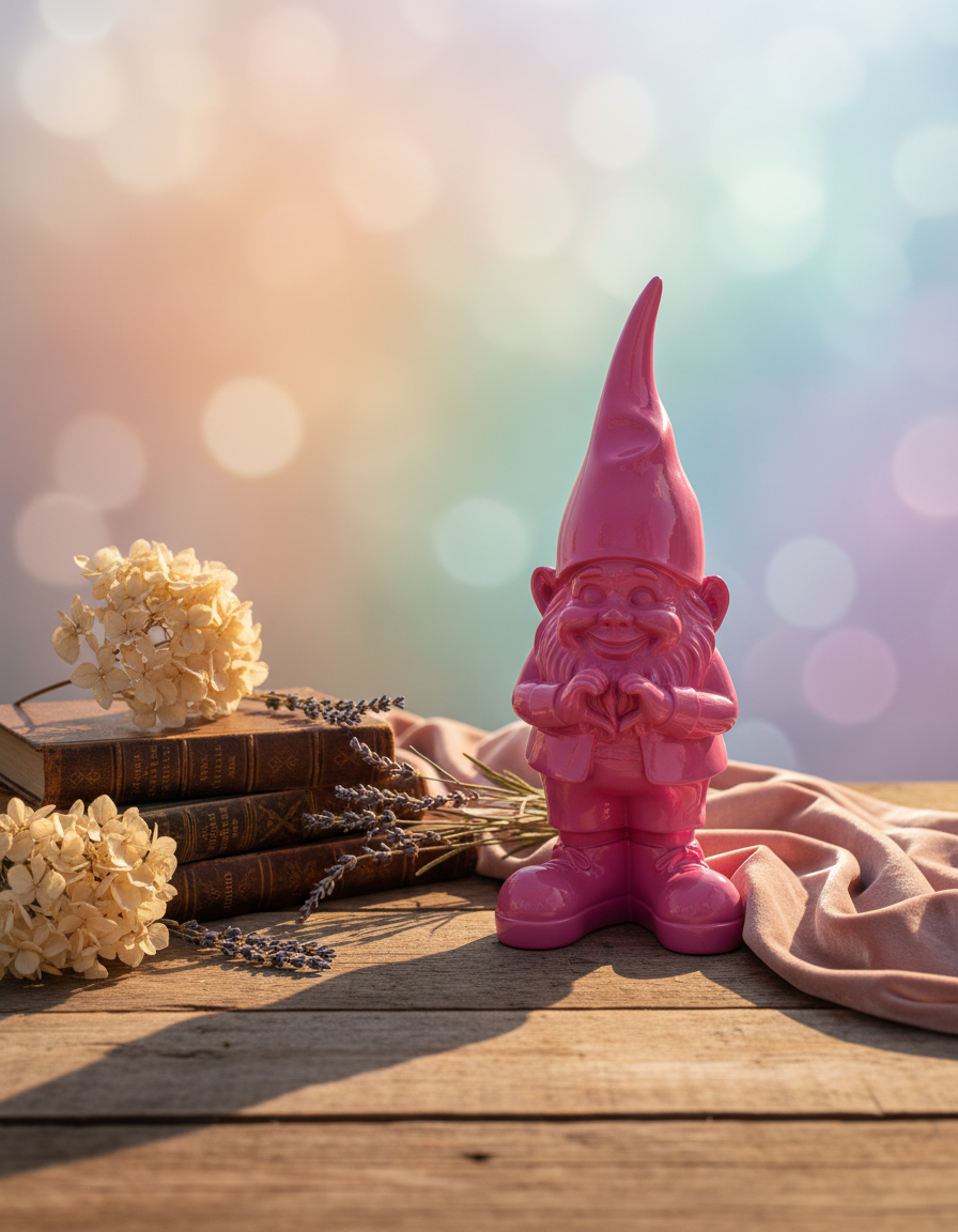 Figurine de gnome "Mains en cœur" rose vif moyen Dimensions du produit : 41x16,5x14,5cm