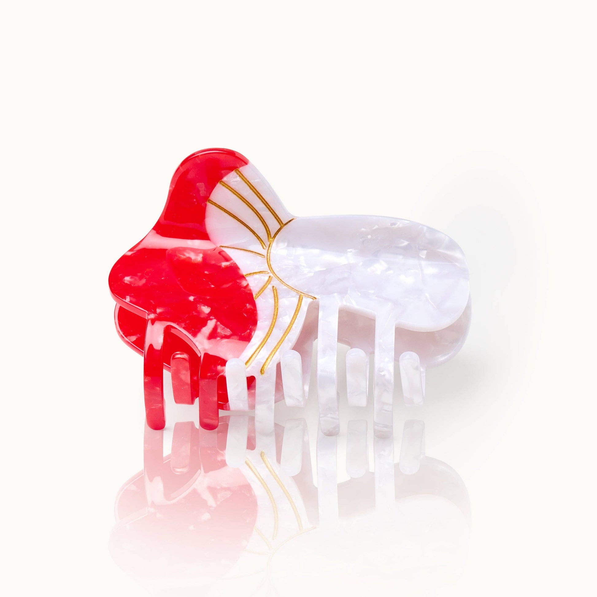 Un champignon dans les cheveux ? Magique ! Cette pince apporte la magie de la forêt directement sur ta tête – ludique, en harmonie avec la nature et un peu féerique. Fais de ta coiffure ta déclaration. en acétate de cellulose (fibres de coton séchées) © Design par Vivi.