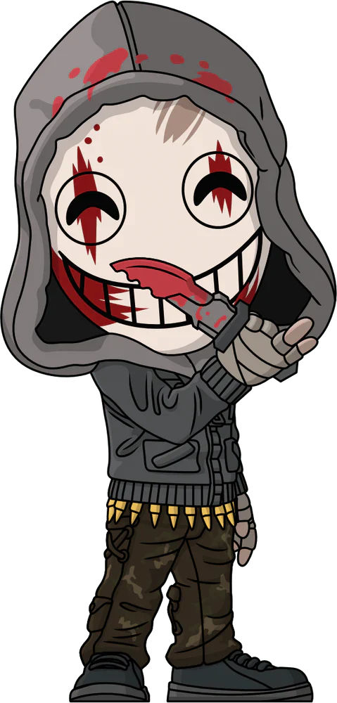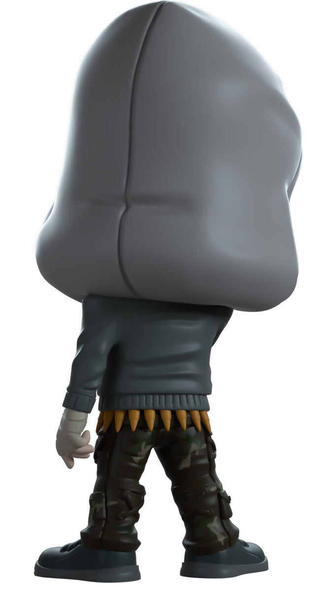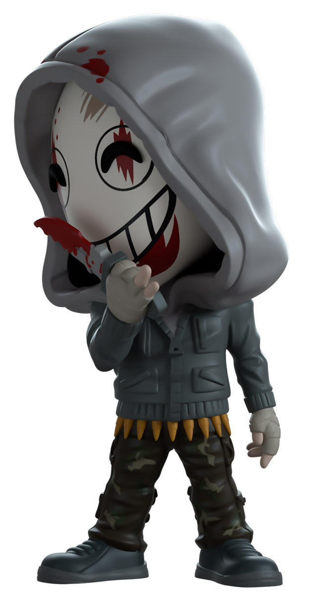 The Legion fait son chemin dans Youtooz dans une frénésie violente ! Mesurant 12 cm de haut et tenant un couteau de chasse trempé de sang dans une main bandée avec 2 doigts en l'air, leur masque blanc souriant regarde à travers l'épaisse capuche de leur veste et est maculé des restes rouge vif de leur dernière victime. Avec des poches de ravitaillement sur leur veste gris-bleu et un pantalon camouflage marron, ils portent une ceinture de balles jaune autour de la taille et de solides bottes grises. L'extérieur de leur emballage montre la Légion se regardant dans un miroir avec leurs mains pressées contre la vitre. Alors que l'intérieur est une forêt en silhouette noire avec une brume rouge et bleue brillante et le logo blanc « Dead by Daylight » à l'arrière, ce motif sinistre se poursuit ensuite sur la pochette de protection avec des arbres sombres l'entourant complètement tandis que leur silhouette peut être vue à travers la grande fenêtre transparente à l'avant. Cet objet de collection est livré dans une pochette extérieure mate, gaufrée et protectrice et un protecteur en plastique de taille personnalisée pour une protection maximale pendant l'expédition.